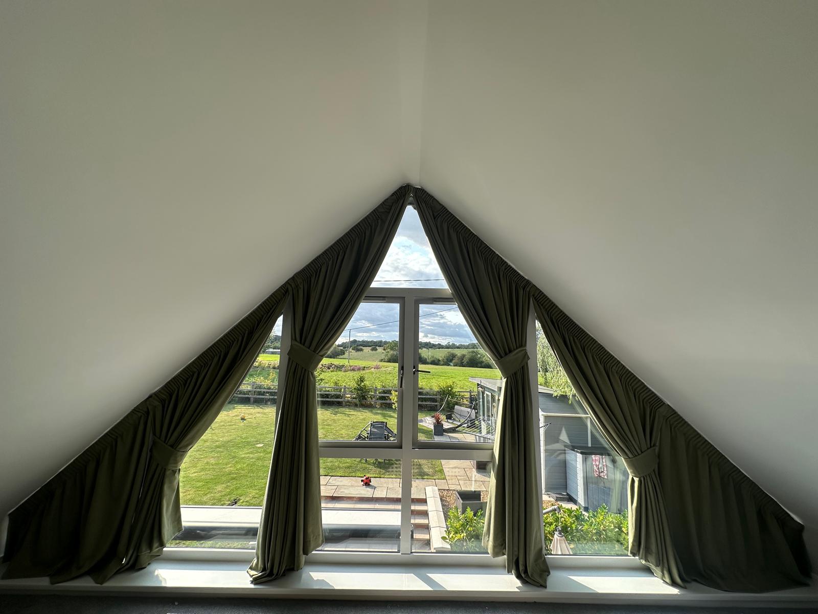 We design triangular window curtains for unusual shaped glazing, pointed architectural windows and rooms where standard curtain solutions simply do not work.